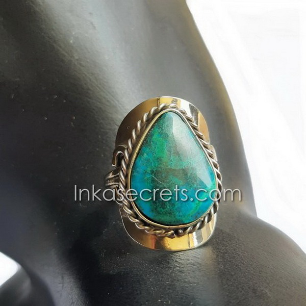 10 Alpaca alloy ring with turquoise semi-precious stone