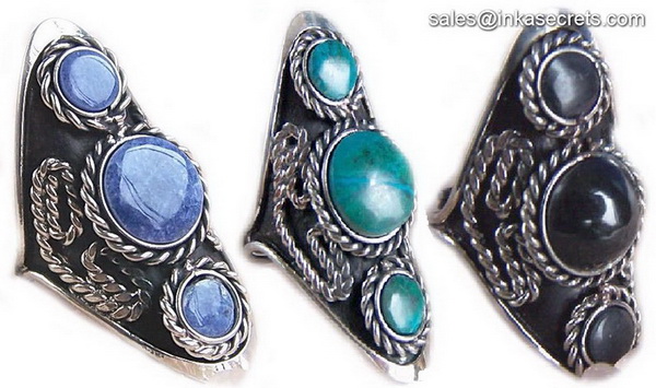 10 Alpaca Alloy Ring with Three Round Semi-Precious Stones