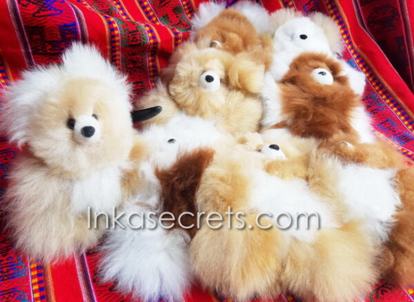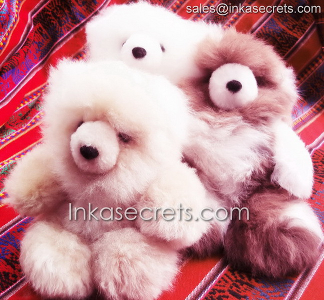Soft and cuddly teddy bears made from 100% baby alpaca fur, handcrafted by Peruvian artisans. Available in solid or two-tone colors and bulk packs of 10 to 50 pieces.