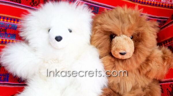 Soft and cuddly teddy bears made from 100% baby alpaca fur, handcrafted by Peruvian artisans. Available in solid or two-tone colors.