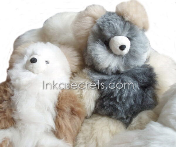 Soft and cuddly teddy bears made from 100% baby alpaca fur, handcrafted by Peruvian artisans. Available in solid or two-tone colors.
