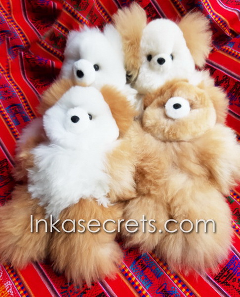 Soft and cuddly teddy bears made from 100% baby alpaca fur, handcrafted by Peruvian artisans. Available in solid or two-tone colors.