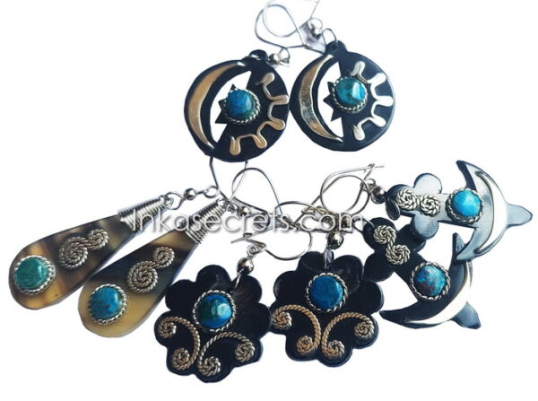 • Peruvian Bull’s Horn Earrings with Semi-Precious Stone.